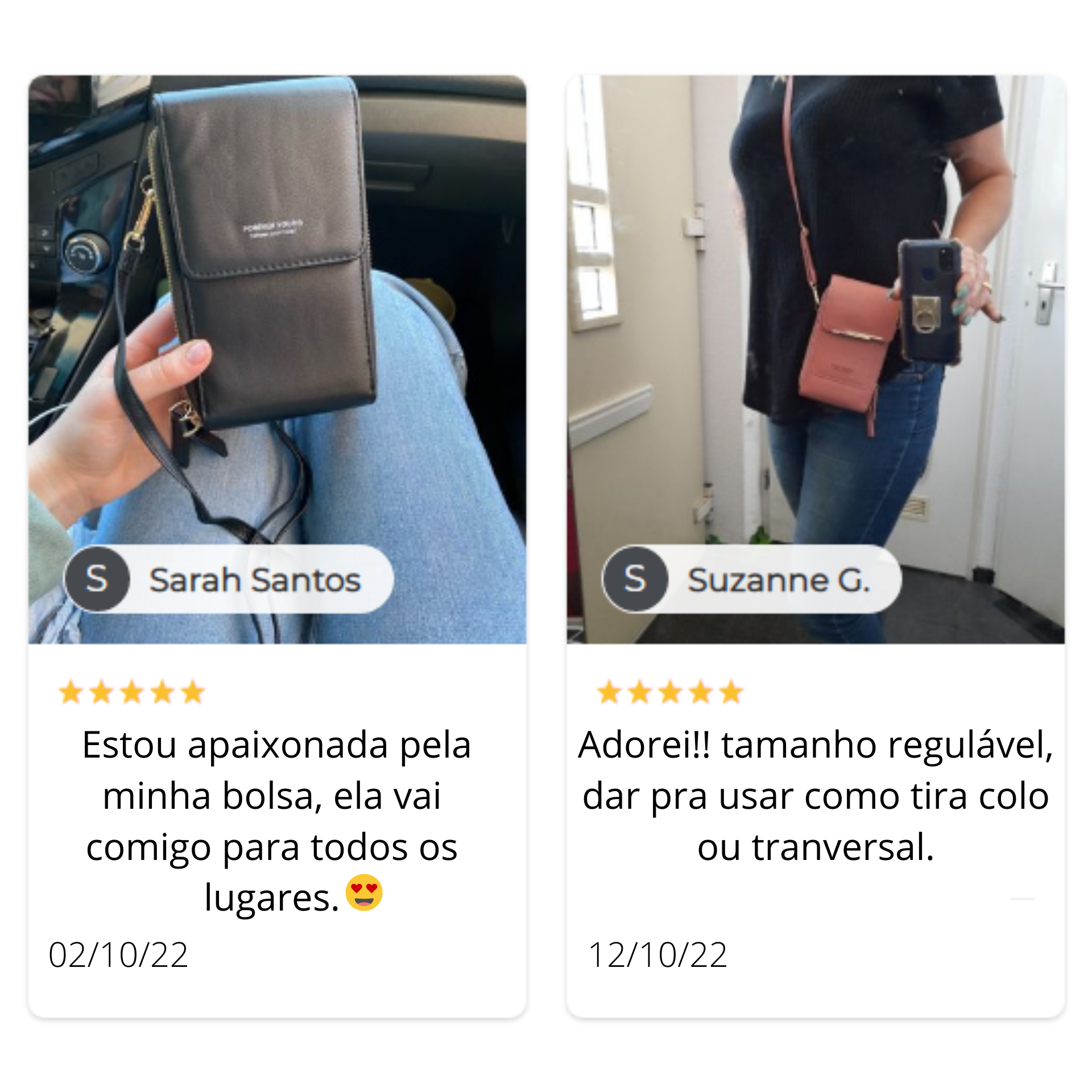 Estamos trazendo esta novidade para você! A Bolsa Transversal que vem ganhando milhares de fãs por onde passa. Tudo isso, devido ao seu designer inovador, que te permite carregar seus objetos pessoais deixando muito organizado, e o melhor você pode mexer no seu celular sem tirar ele da bolsa.