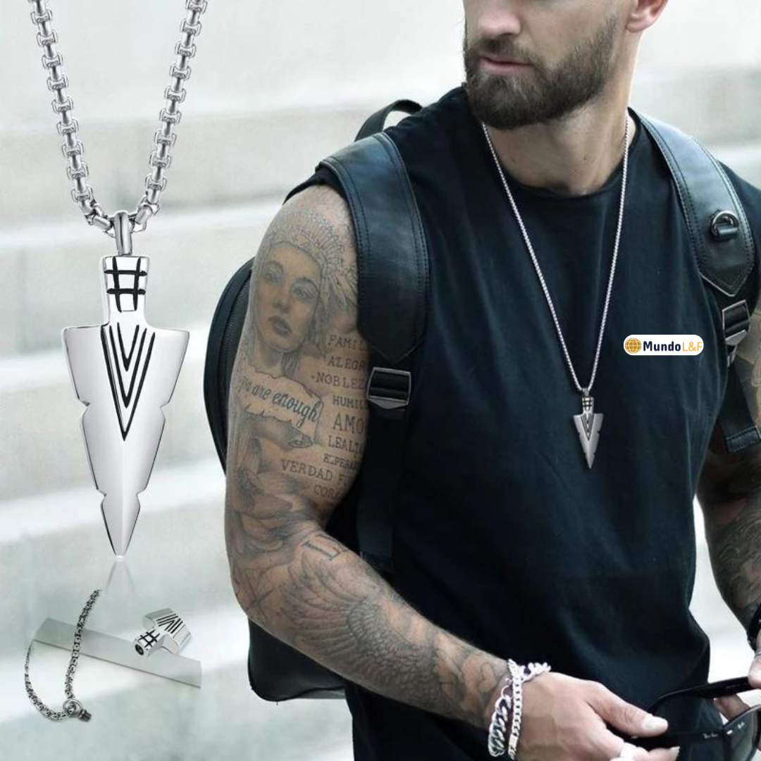 Feito de aço inoxidável de alta qualidade e adornado com um pingente em forma de ponta de flecha, este colar é o acessório perfeito para o homem moderno que valoriza a elegância e o bom gosto."