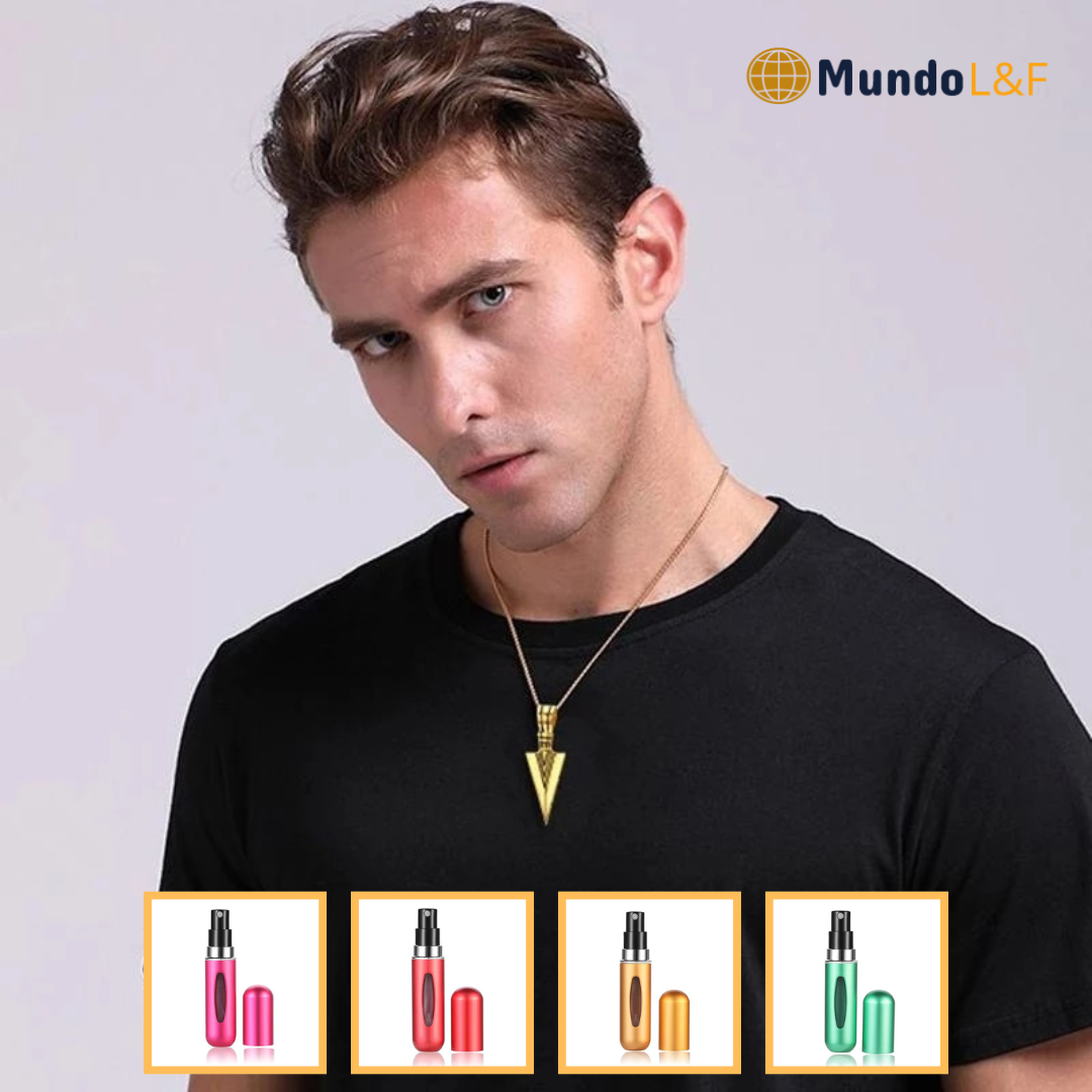 um mini frasco de perfume feito em aço inoxidável. Compacto, recarregável e à prova de vazamentos, este mini frasco permite que você leve sua fragrância favorita para onde quer que vá, garantindo que você esteja sempre preparado para qualquer ocasião, desde uma noite na balada até um encontro com os amigos.