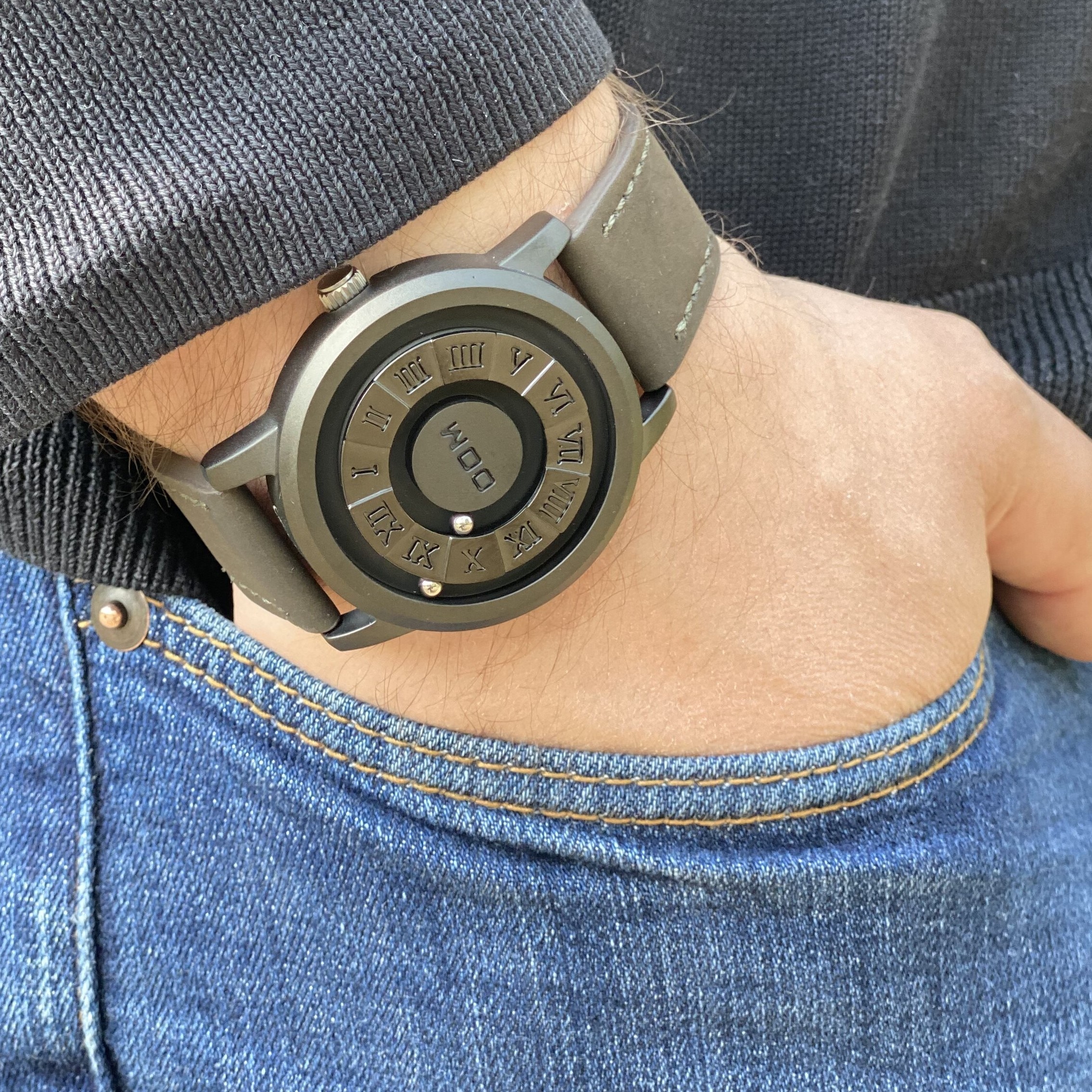 Este relógio parece e funciona de forma diferente de qualquer outro, graças a nossa tecnologia magnética revolucionária, onde cada relógio possui dois rolamento de esferas que usam tecnologia magnetizada para viajar ao redor da face do relógio. Uma faixa fica localizada na borda externa, para marca a hora e a outra borda interna, para marca os minutos.
